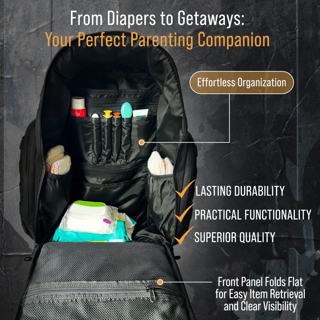 - TRAVEL WITH CONFIDENCE Made to be the ultimate travel diaper bag, this military backpack is the perfect hospital bag for dads with enough space with enough space for a weekend getaway without feeling overloaded.